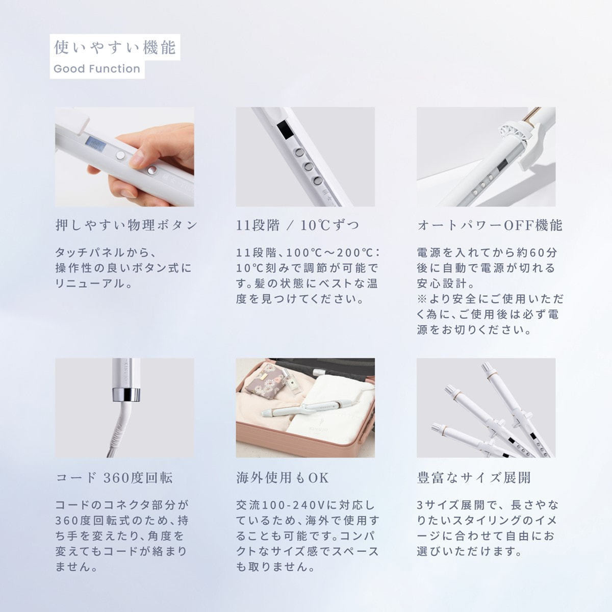 また滑りも良く、髪へのひっかかりが少ないため、髪の負担を軽減します。