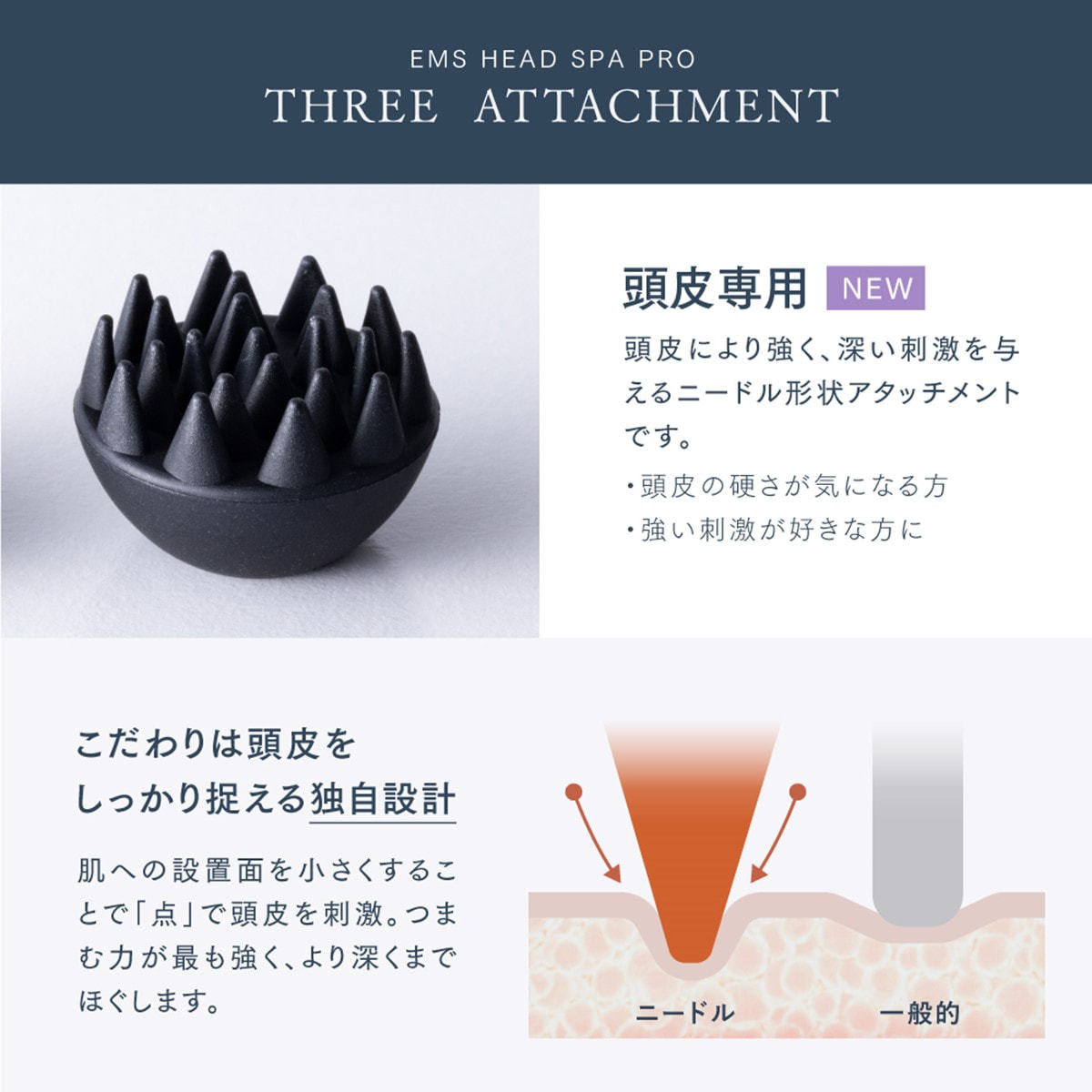 ニードルアタッチメントも加わって、より効果的な頭皮ケアを可能にしました。