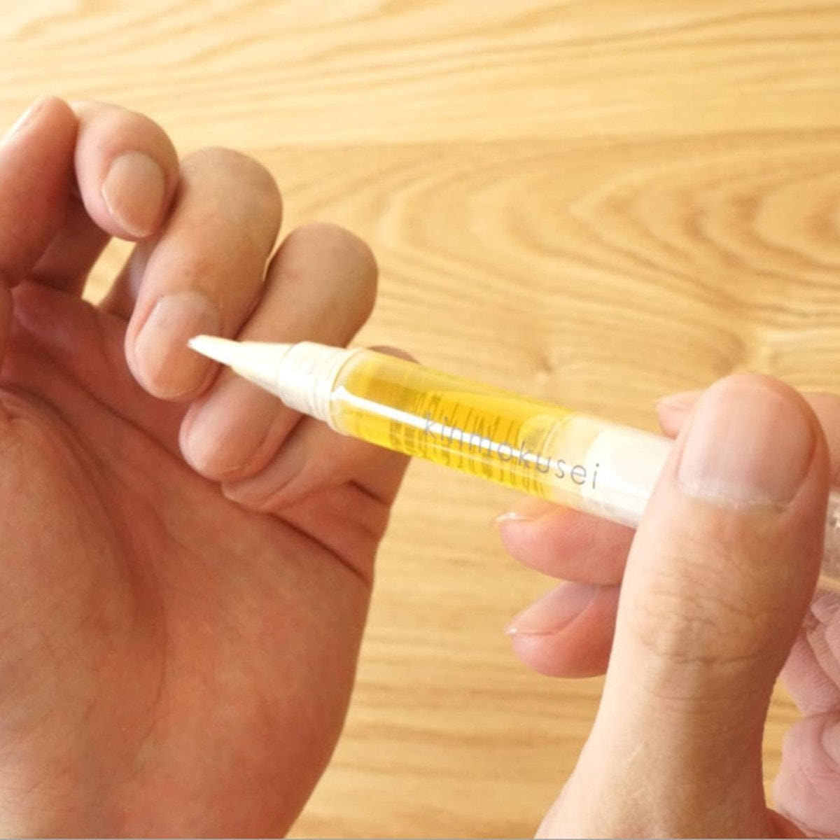 ※最初に使用する際は、オイルが筆先に浸み出るまでノックを何度か押してください。