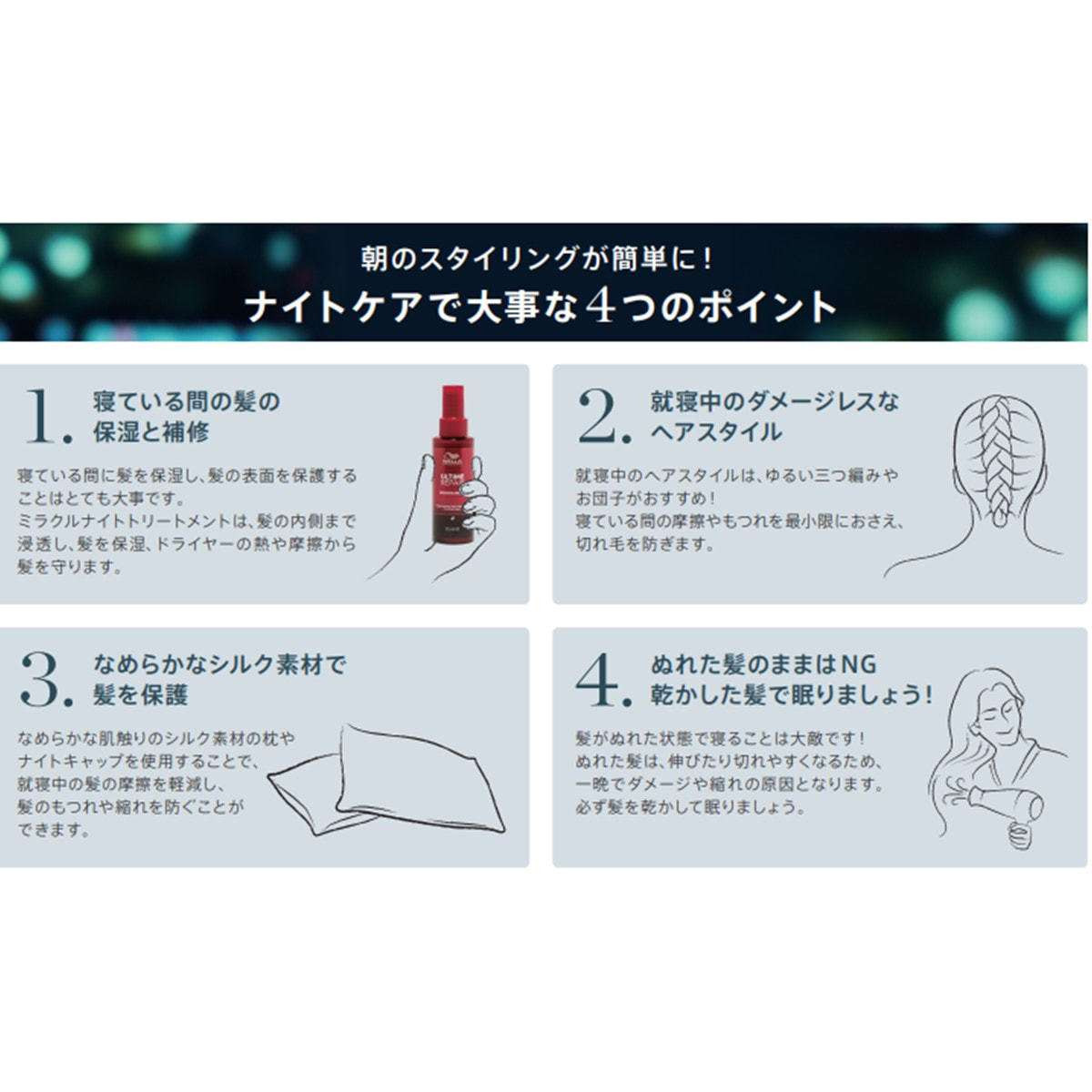 寝ぐせもつきにくく、翌朝のスタイリングがスムーズになる新習慣。