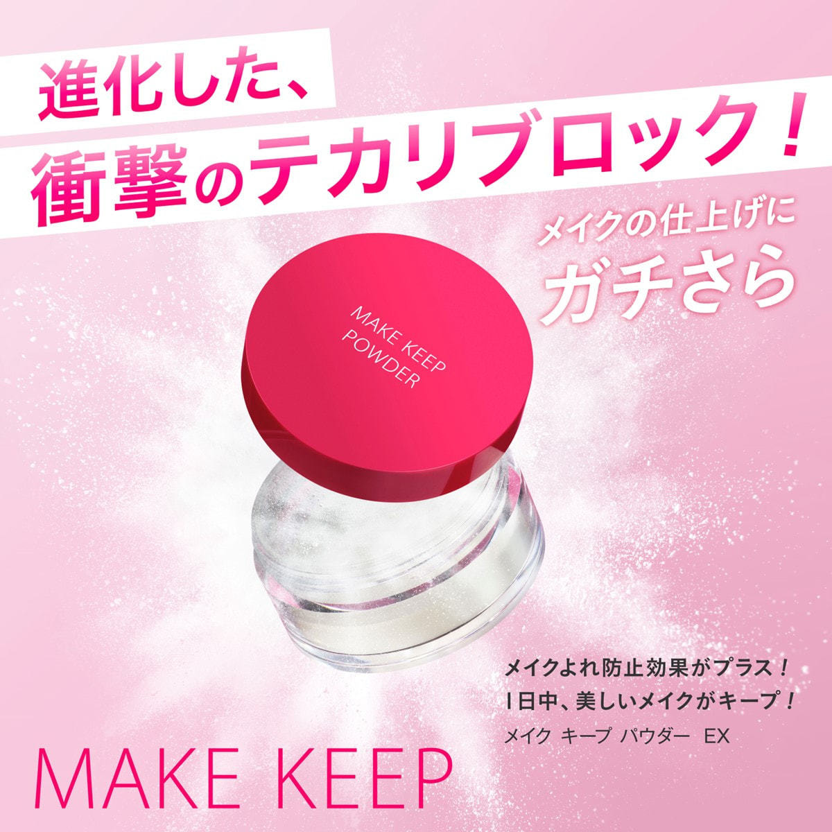 ・メイク キープ ミスト EX +に配合の「スーパーメイクコート成分」をコーティングした「皮脂テカリ・くずれ防止パウダー」を配合。